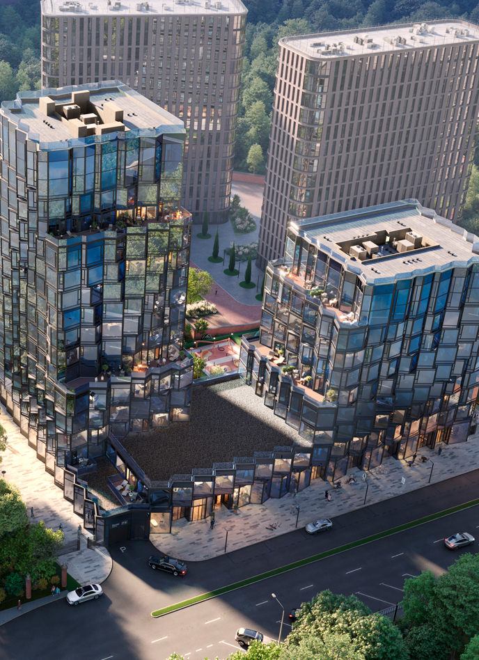 ЖК Новая, 11 — 2 башни премиум-класса в Басманном районе всего на 139 квартир, который возводят рядом с берегом реки Яузы. Его архитектурный ансамбль составляют два изящных стеклянных корпуса, чьи каскадные фасады в стилистике emo-tech не только стали яркой деталью района, но и обеспечивают квартирам панорамное освещение и захватывающие виды на город и набережную реки.