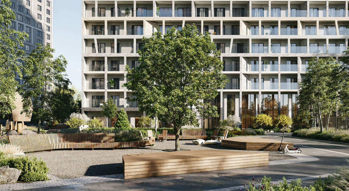 Входные группы с двусветными лобби задают тон всему проекту, встречая жителей атмосферой современного бутик-отеля. Для комфорта резидентов создана собственная инфраструктура: коворкинг, переговорная, детская комната и уединенный приватный двор. Подземный паркинг с бесконтактным доступом связан со всеми жилыми этажами лифтами.