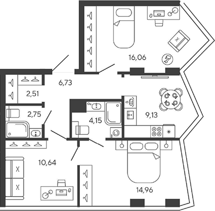 Площадь квартир