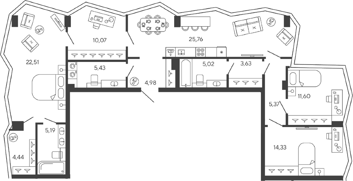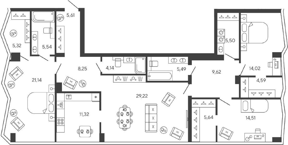 Купить квартиру в ЖК Новая, 11 можно в широком диапазоне метражей — от уютных студий 28 кв.м до просторных лотов 150 кв.м. Особый интерес представляют варианты с высокими потолками (до 5,7 метров) и видовыми террасами. Все квартиры передаются в состоянии whitebox, что позволяет сразу приступить к чистовой отделке по своему вкусу. О качестве жизни заботятся передовые инженерные системы: «умный дом», многоуровневая безопасность, подготовка воздуха и воды.